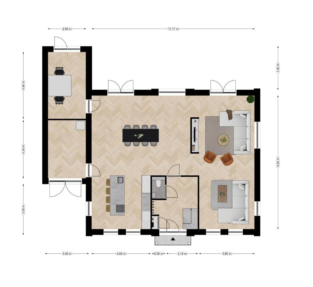 • Voorzien van een werkkamer op de begane grond.